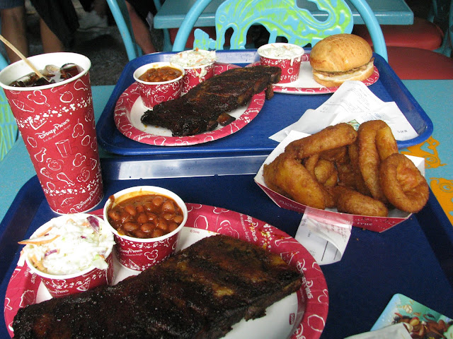 Speaking of quiet, hidden spots to grab a bite, let’s venture over to Animal Kingdom! One of the best places to grab a bite, also can be on the busiest! Flame Tree BBQ often appears to have long lines and be very busy HOWEVER they’ve got a lot of great seating behind the counter service location. Why not take a load off and enjoy an incredible view of Expedition Everest…and this amazing food!